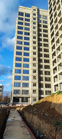В первой секции полностью выполнено остекление, квартиры и подъезды оштукатурены, ведутся внутренние работы по прокладке инженерных сетей - это прокладка коммуникаций – электричества, отопления, водоотведения и водоснабжения. К границе участка подведены водоснабжение и водоотведение. Ожидаем, что ресурсрснабжающие организации выполнят подключение электричества и теплоснабжения к концу года. Все договоры с ресурсоснабжающими компаниями действующие. Так как данный объект заявлен как дом повышенной комфортности, то много времени уходит на продумывания нюансов проживания и удобства для членов Клубного дома «Альтаир». В данный момент специалисты вентиляционно-климатической компании прокладывают трассы для кондиционирования жилых помещений. По окончании этих работ приступаем к установке наружных блоков кондиционирования и приступаем к монтажу вентилируемого фасада. Вот так обстоят на данный момент дела на строительства по адресу ул. Папанинцев д. 25/1.